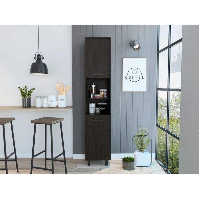 Que mercar no sea un dolor de cabeza para ti, organiza tu espacio con nuestras Alacenas. Alacena, variedad de entrepaños, espacio para microondas, 2 puertas batientes, manijas y patas metálicas. Elaborado en Madera aglomerada MDP, recubierta con láminas melamínicas de excelente calidad, en color Wengue. Sus medidas : Alto: 202 cm Ancho: 40 cm Fondo: 34,5 cm El tiempo de entrega de este producto es de 3 a 8 días hábiles. Su garantía es de 3 años en madera y 1 en herrajes. Pregunta ya por nuestro servicio de armado y, envío gratis. Importante: Este producto no incluye elementos decorativos ni ambientación.