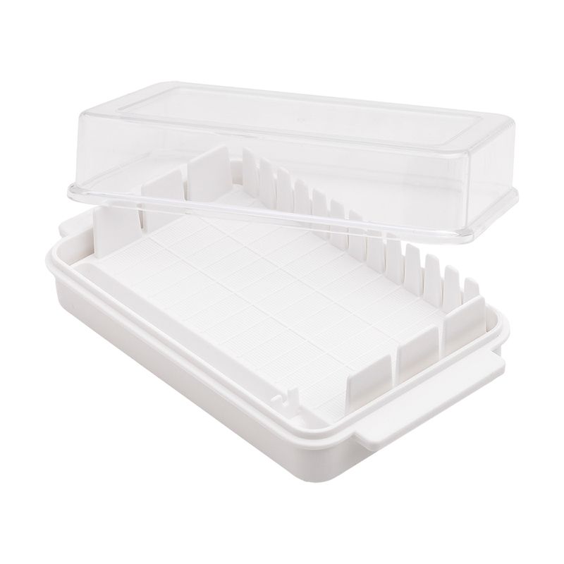 La forma práctica y ordenada de conservar y servir la mantequilla. Este almacenador y porcionador permite cortar porciones uniformes de manera fácil, manteniendo la mantequilla fresca, protegida y lista para usar. Su diseño funcional ayuda a evitar desperdicios y aporta mayor higiene y comodidad en la cocina, ideal para el uso diario.