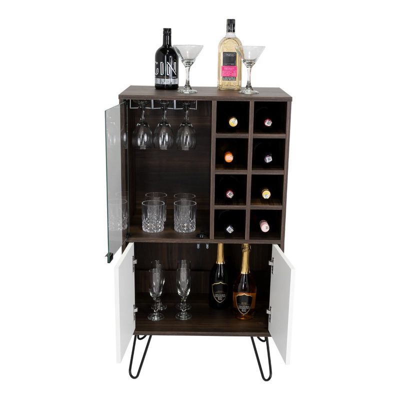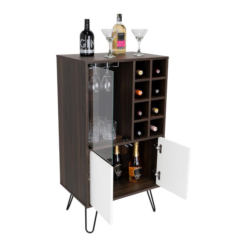MueblesCocinaBaresBar Lara, Nogal y Blanco Perla, con dos Puertas y Amplio espacio para Almacenamiento.