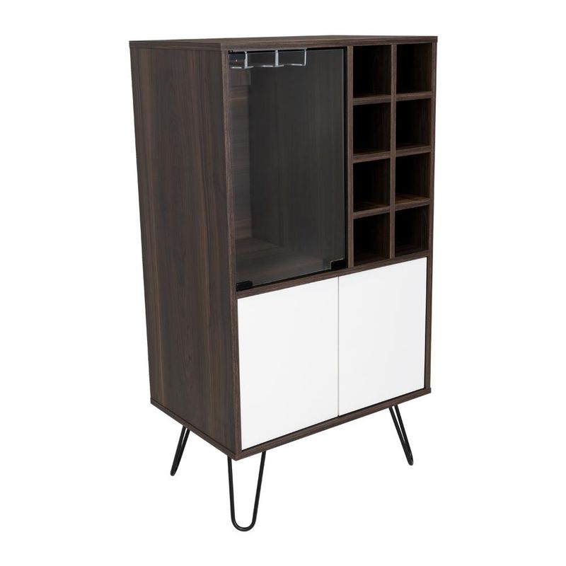 Bar Lara, Nogal y Blanco Perla, con dos Puertas y Amplio espacio para Almacenamiento.