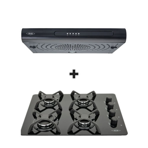 Estufa de empotrar Haceb Cristal Negro 60X43 cm gas natural + Campana Haceb Negra 3 Velocidades